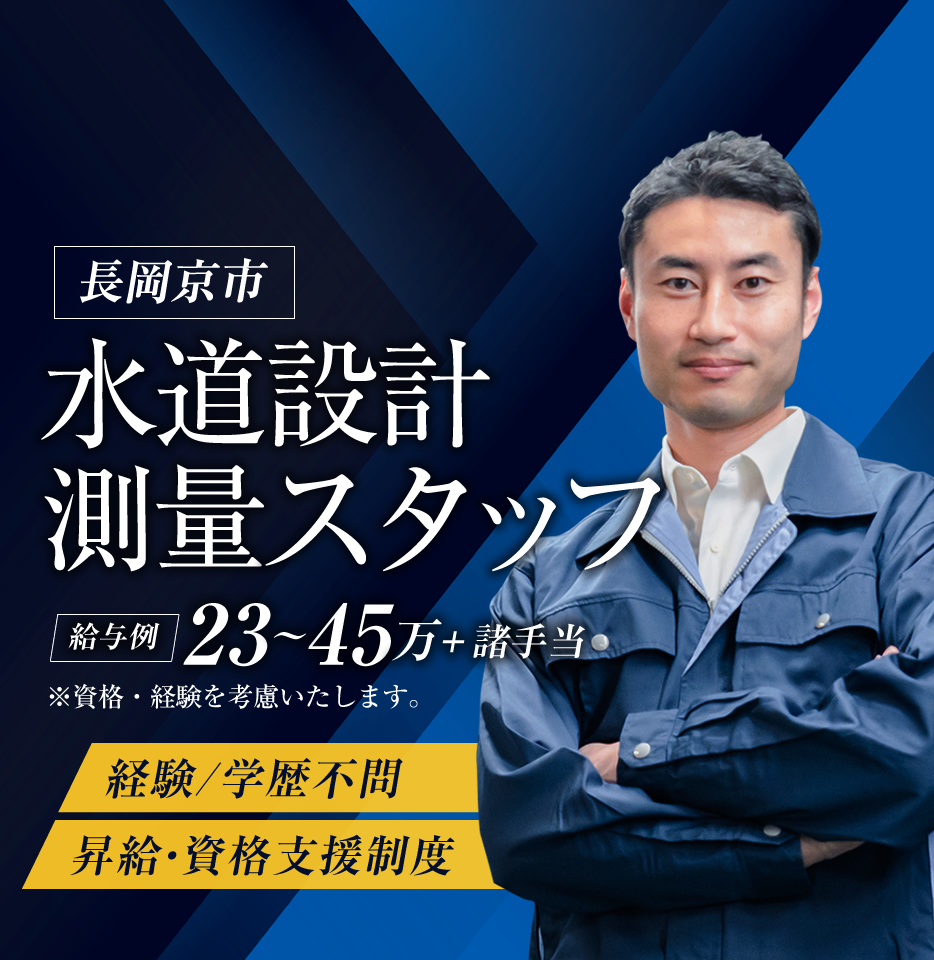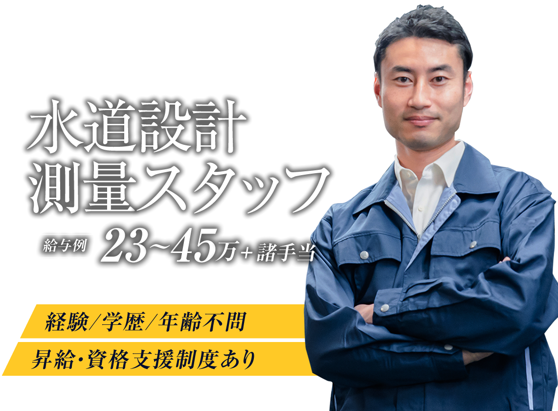 | 募集職種 | 水道設計、測量スタッフ |